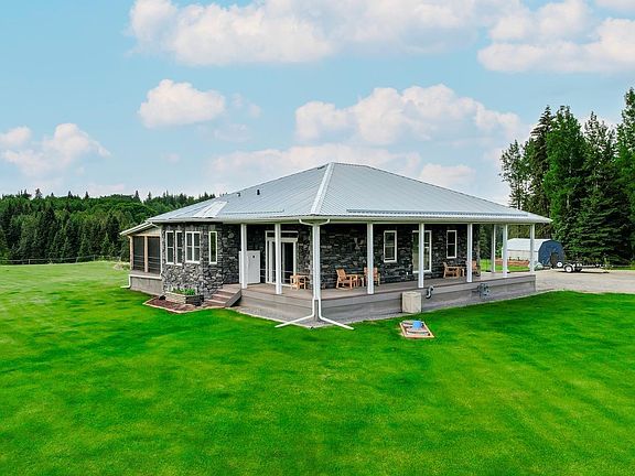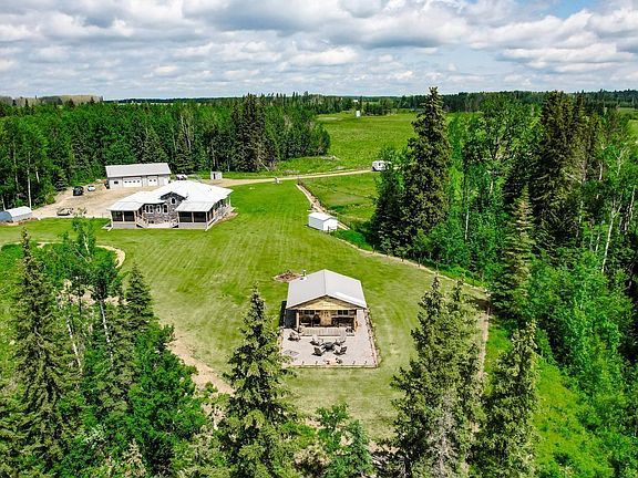 Private & picturesque 160 acres in Brazeau County on a no through road, with Modeste Creek running through. This custom 1800 SQFT, ICF bungalow offers 4 bedrooms, 3 bathrooms & stunning views from a no-through road. Recent upgrades include: new windows & exterior doors (2023), appliances, parameter fencing (2024) on 3 sides of the section and 2 screened-in decks (2023) creating beautiful outdoor living spaces. Features include: vaulted ceiling, a lava stone fireplace, concrete counters, Sub-Zero fridge, sunroom, & spa-like ensuite with steam shower & Kohler jetted tub. The basement boasts 9' tin ceilings, in-floor heating, gas stove, 3 large bedrooms, 5 pce bathroom. The 40'x52' shop is heated, has 110V/220V, water and 2 bay doors. There is a rustic guest cabin overlooking the creek. Property is on both sides of the creek, and siding 160 acres of crown land. NE corner of section has services, but not subdivided. Located just 30 km east of Drayton Valley.
