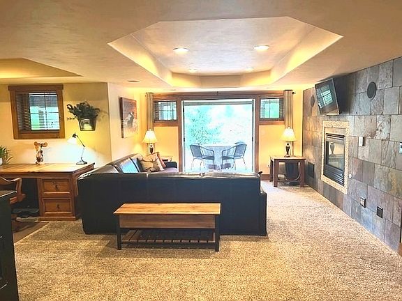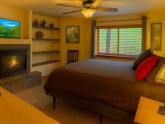 Double-sided gas fireplace (living room & bedroom), fresh carpet, slate kitchen/bath floors, granite breakfast bar that seats 4.