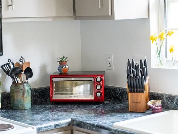 The home is newly updated with laminate flooring throughout and thoughtfully decorated. It's a wonderfully quiet, clean, and inviting space. Fully equipped kitchen to meet your culinary needs.