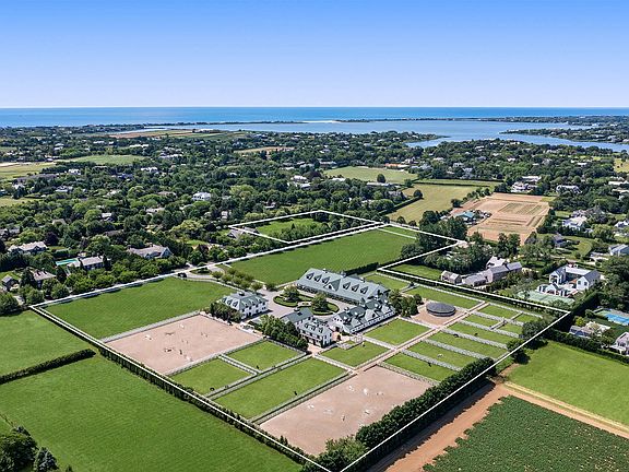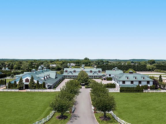 Khalily Stables is a large scale equestrian compound set on 19.2 acres+/- of verdant landscape in the heart of Bridgehampton's farm corridor. The estate includes a 16.5 acre+/- custom equestrian facility comprised of 5 structures, fenced paddocks, indoor and outdoor riding, plus a 2.6 acre+/- agricultural reserve to the south.
