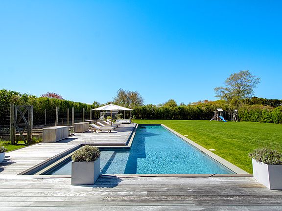 Rental Registration #: RP190117 Moments from the Ocean, a Refined Bridgehampton Summer EscapeAvailable for summer rental, this newly crafted shingled modern residence offers a resort-level Hamptons experience set on 1.3 acres in a prime location moments from ocean beaches and the village center of Bridgehampton. Designed with a clean European sensibility, the home is surrounded by meticulously landscaped grounds, where a wisteria-draped pergola, mature hydrangeas, and hedged lawns create a private and tranquil setting. Six en-suite bedrooms provide luxurious accommodations for family and guests, including a ground-floor primary suite with spa-like bath and French doors opening directly to the gardens. The light-filled interior is ideal for summer living, anchored by a chef's kitchen with top-tier appliances that flows seamlessly into an open dining area and great room. A dramatic wall of glass opens to the outdoors, creating effortless indoor-outdoor living for entertaining or relaxed evenings at home. The lower-level media lounge features an 80-inch screen with Dolby Surround Sound, offering a perfect retreat for movie nights. Outdoors, a striking two-story pool house includes a full bath, outdoor shower, and an airy upper-level lounge-ideal for guests or quiet relaxation. At the center of the property, a private, hedged 60-foot lap pool is surrounded by expansive decking and rolling lawn. Additional amenities elevate the summer experience, including a boule (petanque) court, basketball area, children's playground, and a flourishing vegetable garden. A central indoor-outdoor sound system allows music to flow effortlessly throughout the house and grounds. Ideally located near the Jitney and train, as well as Bridgehampton's renowned restaurants, shops, and pristine beaches, this exceptional rental offers privacy, style, and convenience-an effortless summer retreat designed for both relaxation and entertaining.