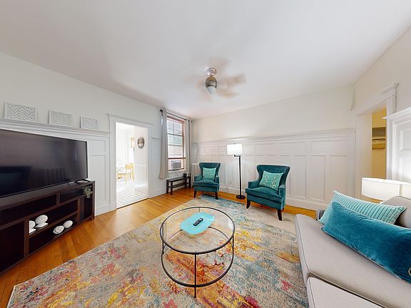 Welcome to our furnished 2-bedroom apartment at 40 Orkney Rd in Cleveland Circle, Brighton! Ideal for professionals, families, or students, it offers easy access to Boston College and Longwood Medical.Inside, youll find a spacious living room with high ceilings, hardwood floors, and natural light. The fully equipped kitchen features stainless steel appliances and an eat-in area for four.Both bedrooms are generously sized with ample storage, and the modern bathroom includes a shower/tub combo. Additional amenities include on-site laundry, dedicated parking, and a private back porch.Conveniently located near MBTA B, C, and D Green-Line trains, bus routes, and major highways, the neighborhood offers parks, dining options like Eagle's Deli and Fin's Sushi, and the scenic Chestnut Hill Reservoir for outdoor activities.360-tour: **