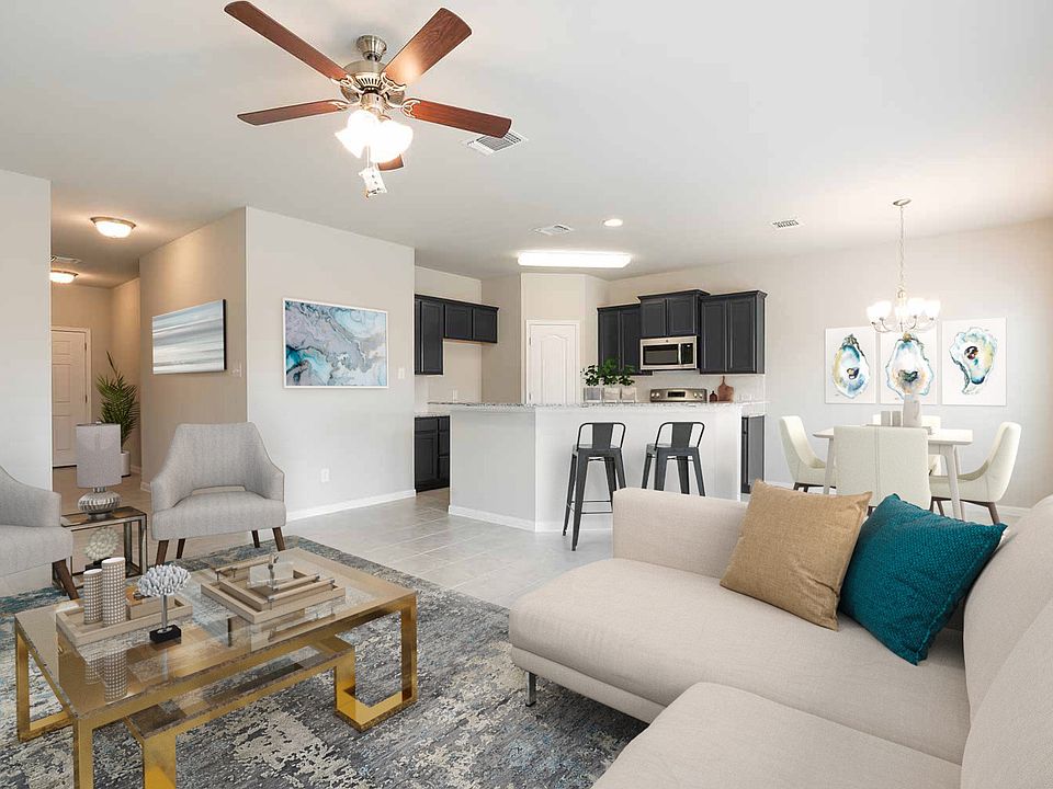 The spacious living area and large kitchen island with granite countertops makes this home perfect for entertaining! Families will love the storage throughout the home and walk-in closets in the bedrooms.