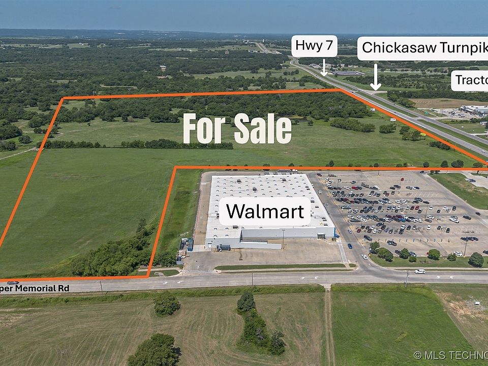Unlock the potential of this remarkable 56 acre mol property located directy west of Walmart, ideally positioned off Hwy 7 / W Broadway in Sulphur, Ok. This is one of few commercial development sites in Sulphur, within walking distance to McDonald's, AT&T, and less than 10 miles to the scenic Arbuckle Lake - making it a prime location. Previously platted for Twelve one-acre mol lots! This property offers a unique opportunity for developers looking to make their mark. The seller is open to offers and is flexible in potentially subdividing the land/selling individual lots, allowing for strategic commerical road frontage lots directly west of Walmart or South of Walmart and McDonald's. With the rest of the acreage available for purchase or development, the possibilities are endless. Situated near the entrance to the Chickasaw Turnpike off Hwy 7, this location benefits from high visibility and easy access, making it perfect for chain restaurants, retail businesses, and other commercial ventures. The vibrant local community and nearby attractions ensure a strong customer base and ample foot traffic. Whether you're looking to acquire a substantial parcel of land for comprehensive development or seeking smaller lots for targeted projects, now is the time to act! Buyer to perform due diligence for utilities available. Building restrictions do apply.