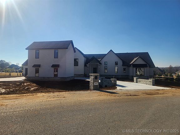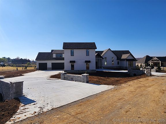 30930 E 67th Pl S, Broken Arrow, OK 74014 Check out this amazing new construction home. 5 bedrooms 5 baths and more than enough garage space. Sitting on an acre lot in the beautiful Meadows at Steely Farms neighborhood. 4 bedrooms down including guest room with bath. In home storm shelter, tankless water heater, stylish beams, large closets, game room and even more additional spaces throughout make this home one of a kind! Entertainers circle drive with plenty of parking. Breezeway attaches to additional garage space and even more living space above. Home is nearly complete so come put the finishing touches on it! Over 1400sq of garage space.