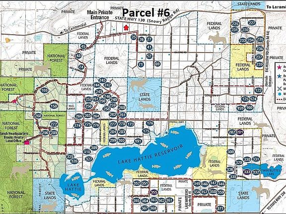 This is Wild Horse Ranch! Prime parcel #6 is less than 1.5 miles to main private entrance on Hwy 130, great access in winter. Utilities run adjacent to the property (not true of all parcels), and our near neighbors have water (also not true of all parcels). Beautiful views of the Medicine Bow and Sheep Mountain. Living at Wild Horse Ranch entitles owners to recreational use of 2,200 acre Lake Hattie including a boat dock, access to hunt on state and federal lands, beautiful aspen grove picnic area, wildlife roaming on the ranch, and of course, the namesake wild horse herd. Ten minutes to Centennial for pizza, 15 minute access to Snowy Range ski area, 20 minutes to Laramie, 2 hours to Steamboat Springs ski area, and 2.5 hours to Denver and an international airport. We're sure you'll find this parcel's combination of views, access, and price to be the best value available!