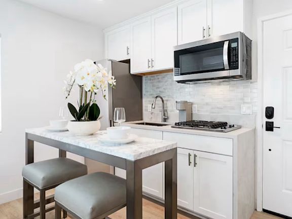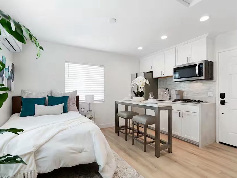 Quiet treeline streetPrivate studio apartmentModern and trendy furniture