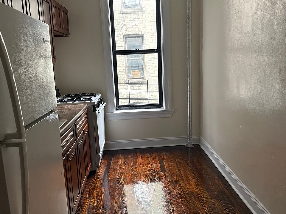 4 th floor, 1 bed/1 bathroom apartment with heat and hot water included. Small pets allowed, no laundry or parking available. 1 year lease with 1 st month's rent + security and 20$ application fee per adult.