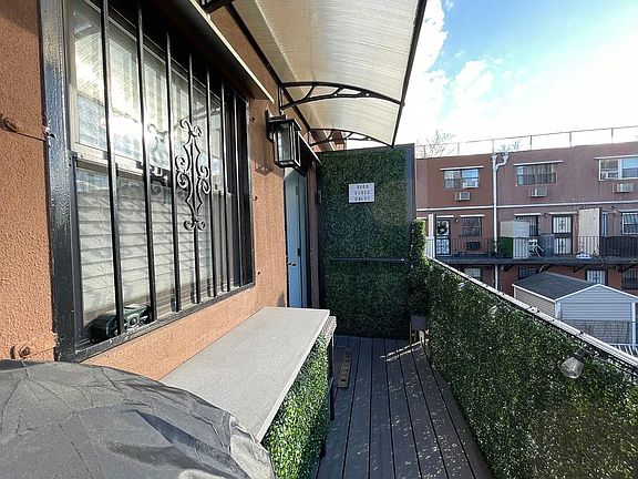 Patio with view of parking lot. Home is also equipped with Verizon Fios 1-gigabit internet, Sonos wireless sound system, Nest Learning Thermostat, Nest Protect smoke detectors, Alexa voice-activated devices and a plethora of smart lights/switches.