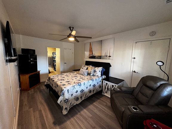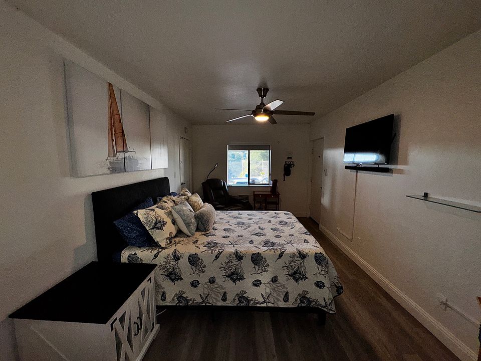 Private first floor entry to your completely private room and bathroom. Comfortable queen size bed, large TV, new bedside tables with chargers, microwave,electric fireplace, refrigerator, Keurig coffee maker and toaster oven. Large bathroom with cabinets. Covered outside space with utility sink and prep table. No indoor kitchen. Covered outdoor kitchen with sink barbecue, separate burner and prep table. Walking distance to sporthaven beach. No pets, no smoking. occupancy is only for 1 individual.