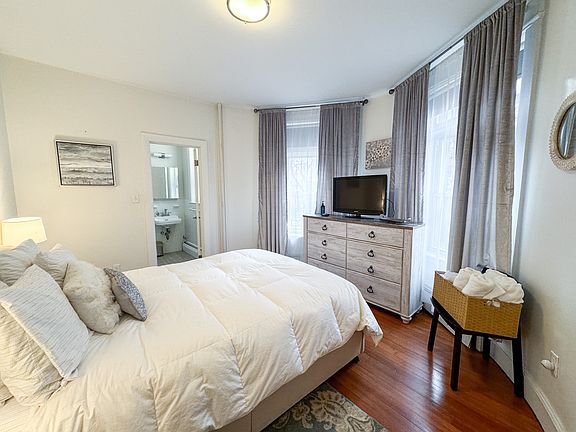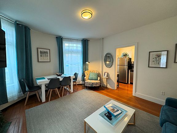This sunny, renovated, Brookline fully furnished 1 bed, 1 bath unit offers beautiful features such as huge windows, hardwood floors, granite/stainless kitchen, and tiled bath. The large living room provides a workspace, electric fireplace, dining area, and a flat-screen TV. The bedroom has a queen-sized bed, en suite bath, with plenty of storage and there is also a front yard space perfect for grilling and al fresco dining. Coin-op laundry in the basement and parking available for rent (please call ahead to reserve parking).This neighborhood is just steps to restaurants, shops, and public transportation (MBTA Green Line C, D and B trains) with easy commute to downtown Boston, Longwood Medical area and hospitals, Boston College, Boston University, St. Elizabeth's and all of Boston's tourist attractions.360-tour: **Renovated and spacious, and comfortably sleeps up to 3 guests, this unit is clean, well appointed and provides an easy check-in process.