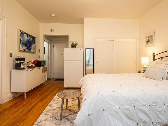 Third floor studio in a brownstone located in the heart of Coolidge Corner. Offering hardwood floors with one queen bed, fully applianced kitchenette and private bath. Unit offers flat screen smart TV and sofa for 2. Located steps to Coolidge Corner, Trader Joe's, restaurants, cafes and shops, the condo is also a few steps to the green line C train. Quick commute to Boston, Longwood Medical, MIT, tourist attractions and more.360 - tour: **