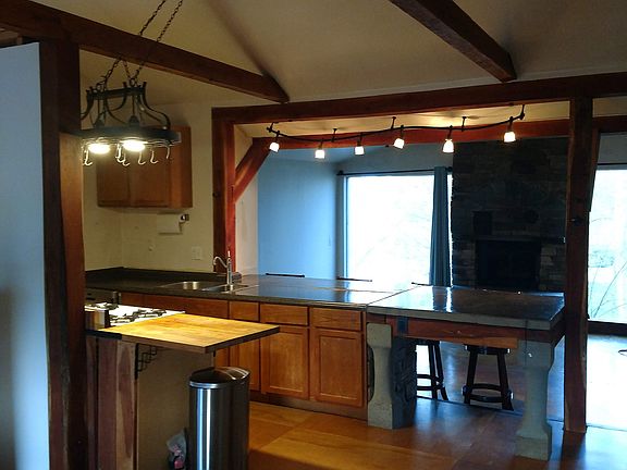 Luxury 2 bedroom with floor to ceiling windows and gas fireplace. Galley kitchen with custom stone bar. Large master bedroom fits king bed, small 2nd bedroom or office. Living room and office/extra dinning space. Bathroom with tub, storage loft. In-unit laundry with storage area. Private outdoor living space with water fountain and great views. Utilities (electric/hot-water and gas/heat/cooking) not included. High-speed internet available through Frontier or Haefele or spectrum. Water,garbage and snow removal included. 1-2 car parking available. Great for outdoor enthusiasts (Mnt. biking, XC skiing, hiking), walking distance to Hammond Hill state forest trail, this is a quiet country space just outside of Slaterville Springs. 7-10 min drive to Downtown and Cornell.