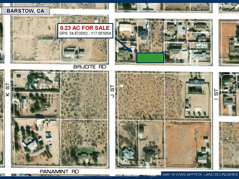 Price Reduced!! Barstow Heights lot on pavement! This property sits outside of the Barstow City Limits and falls within the authority of the San Bernardino County which has zoned the lots as Residential-1. Electricity is provided via overhead power lines with a pole on the southeast corner. Seller Financing Available! With $10,000 down, the seller will carry a First Trust Deed of $6,900 at 6% interest for 2 years. Monthly payments are $305.81 until paid, no prepayment penalty. GPS: 34.872061, -117.051083