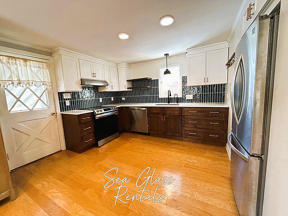 Available Now Beautiful 2 bedroom, 1-bathroom Cape in Brunswick. Kitchen has stainless steel appliances, quartz countertops, living room, dining area with a sitting room with access to the back deck and full bathroom with tub/shower and double sinks. Upstairs you have 2 nice size bedrooms. Basement is partial finished where you could have an office or work out area. There are hardwood floors throughout, brick hearth, nice countertop space, ceiling fans in bedrooms, washer and dryer in basement, lots of natural light, carport, fenced in yard, nice yard space, 2 sheds tenants can use and off-street parking. A small (under 20 pounds) dog may be considered, No cats (please do not ask) with pet rent and No smoking of any kind. Rent is $2,050.00. All other utilities are tenant's responsibility. Home is heated with propane. Property is close to elementary school, downtown Brunswick for shopping, restaurants, entertainment and much more. A completed application is required prior to viewing any property; you may find the application on our website at wwwseaglassrentalscom. Lease, security, credit and background check.
