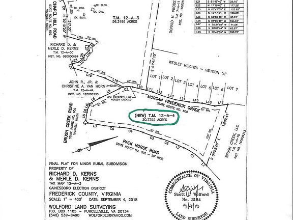 Unrestricted and unique , this 30+ acre wooded site is a 20 minute drive north of Winchester. The land is sandwiched between two state roads. You have to drive the ridge to appreciate what the land has to offer for recreation (the hunting is fantastic), potential for building and taking in the beauty of the tall hardwoods. The ridge does fall off on both sides to the roads down below, but the peacefulness and rural feel will appeal to you. This parcel has been surveyed and is across the road from the parent tract of 87+ acres, where the owners reside. The property is subject to approval to be subdivided from the parent tract. The land is in "Land Use" for tax relief benefits. The future Buyer will assume any rollback tax that may be associated with future subdivision of this 30 acres. Ask about the details. Please take a copy of the plat and tax map along with you and let the Listing Agent know if you plan to visit the property during hunting season.