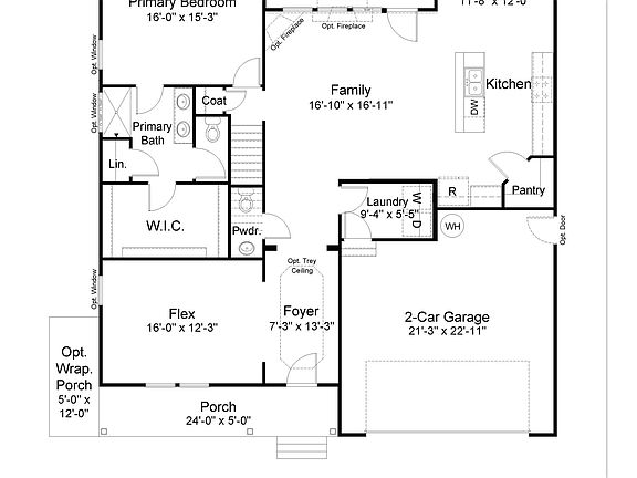 Walk-in unfinished storageWalk-in kitchen pantryWide foyerWell-appointed bathroomFlex roomGenerous closet
