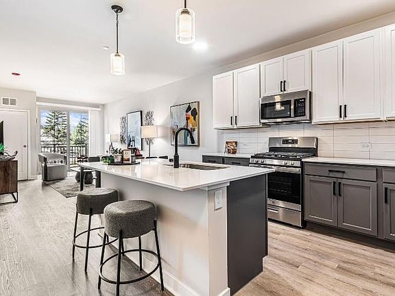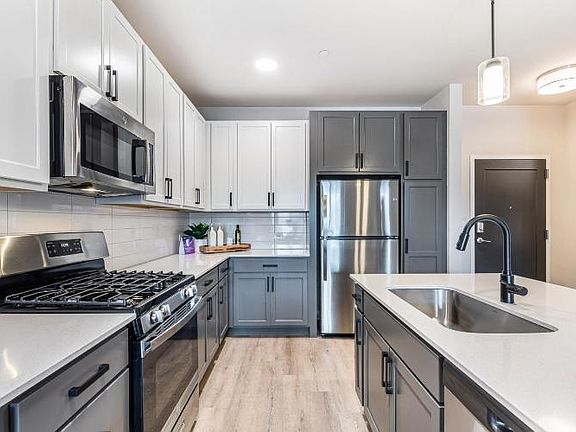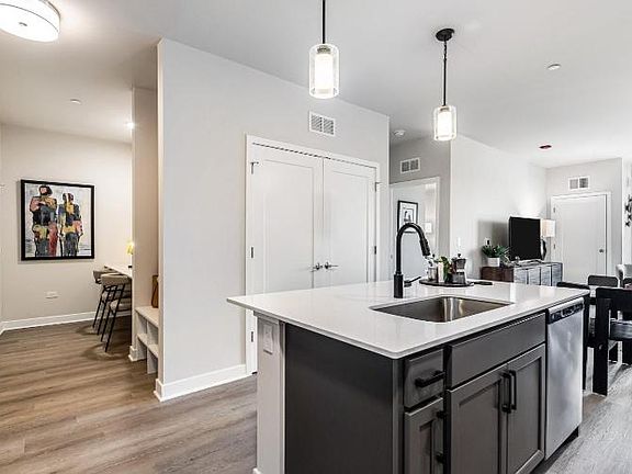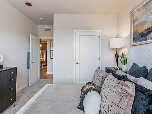 This luxury 1-bedroom apartment offers modern 2024 construction with high-end finishes throughout, perfect for renters seeking comfort and style. The open-concept layout features a designer kitchen with quartz countertops, a large island, stainless steel appliances, and a gas range ideal for cooking and entertaining. Residents will enjoy the convenience of in-unit laundry, keyless entry, ample closet space, and a spacious double-vanity bathroom. The community elevates everyday living with resort-style amenities including a swimming pool, sundeck, fitness center, business lounge, pet spa, and dog park. With optional heated garage parking, EV charging, and close access to the Buffalo Grove Metra, this home delivers both luxury and unbeatable convenience.