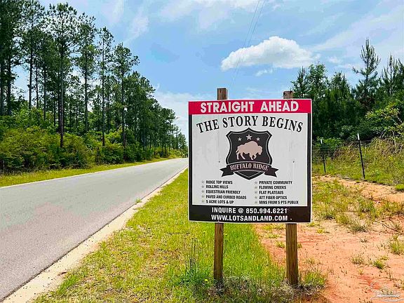 One of the last few lots available in Buffalo Ridge - Great Value for 5 acres of high and dry land. Buffalo Ridge is a newly built community located in Pace, FL. offering large residential lots ranging from 5-27 acres and expansive views from its high rolling hills. The subdivision has a privately owned paved roads with electricity and AT&T service. This lot sits at a higher elevation in the subdivision. The lot gently slopes down from the road and offers plenty of room for a sprawling house and accessory structures with a potential view. Soils are mostly sandy. There has been a survey done on the property. The property is located approximately 45 minutes from downtown Pensacola, and an hour from the Gulf of Mexico. It is convenient to Pace shopping for all of your household needs. There is a new Piggily Wiggly grocery store within 5 minutes of the property. This neighborhood offers a more rural lifestyle with the ease of conveniences. Great value! Schedule your showing to see the possibilities today!