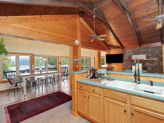 The living space is open yet cozy, with a vaulted ceiling, multiple seating options, & a gas fireplace, so you never have to haul wood. The 65 inch Smart TV (Netflix, Hulu, Prime Video, Apple TV) is perfect for movie nights after a long day on the lake or on the slopes.