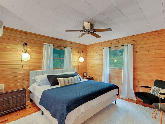 Breathtaking Watauga Lake & Blue Ridge Mountain views! The Watauga Lake Cabin has a 1970s wood-focused interior, hand-built to bring outdoor views in. Rented fully furnished, as shown. Not available for subletting.