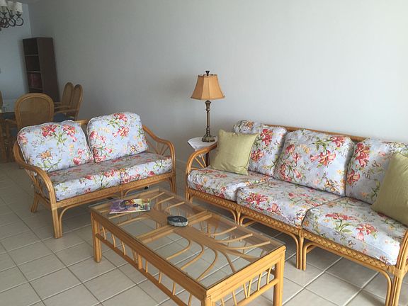 Incredible Caribbean Sea and Harbor views from this Walk-In unit in upper most building.This turn-key unit has the enlarged living room that extends to the porch with an uninterrupted sea view to Buck Island. The location affords nice easterly breezes, and spectacular sunrises. Condo has huge bedroom plus a dressing room with tons of storage. Ceiling fans and air-conditioning, washer & dryer, incl
