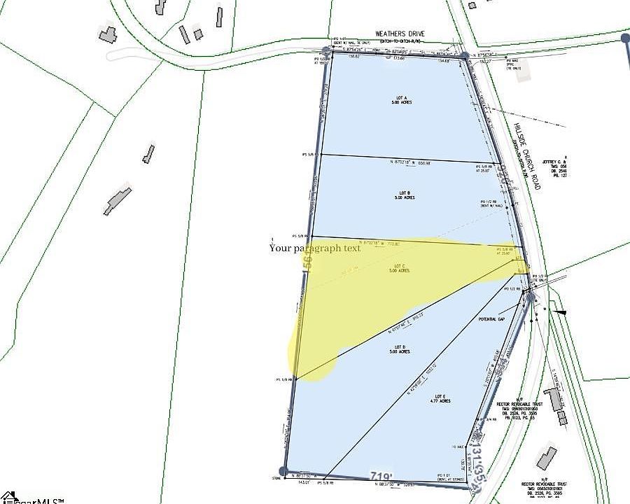 Discover Your Dream Oasis at Hillside Church Rd, Fountain Inn, SC 29644 Property Overview: Location: Hillside Church Rd, Fountain Inn, SC 29644 Land Size: 5 acres Special Feature: Nestled next to a serene creek Description: Ready to build your dream home? Look no further! This stunning 5-acre parcel at Hillside Chruch Rd in Fountain Inn, SC, is the perfect canvas for your future masterpiece. Imagine waking up to the soothing sounds of a creek right next to your property—nature's alarm clock at its finest! Nearby Amenities: Shopping: Whether you're a shopaholic or just need a quick retail fix, Fountain Inn has you covered. From the chic finds at Over the Rainbow and Black Tulip to the unique treasures at The Front Porch - Antiques and Farmhouse Decor, your shopping spree is just a stone's throw away. And let's not forget the essentials at TJ Maxx and Carolina Consignment. Dining: Foodies, rejoice! Fountain Inn boasts a culinary scene that will make your taste buds dance. Savor the flavors at The Farehouse, indulge in sweet treats at Gio's Pastry Shop, or enjoy a laid-back evening at the Fountain Inn Taproom. With options like Sweet Catherine's and Stella's Southern Bistro, your palate will never be bored. Highways: Need to commute or just love a good road trip? Convenient access to major highways ensures you're always connected. Navigate with ease and avoid traffic with optimized routes, making your daily drive a breeze. Schools: Education is a top priority, and Fountain Inn delivers. These institutions are known for their excellent ratings and diverse student populations, a well-rounded education. Why Hillsdie Chruch Rd? This property isn't just a piece of land; it's a lifestyle upgrade. Picture yourself enjoying morning coffee by the creek, hosting epic BBQs on your expansive acreage, or simply basking in the tranquility of your private oasis. Plus, with all the nearby amenities, you'll have the perfect blend of seclusion and convenience. Ready to Make the Move? Don't let this opportunity slip through your fingers. Contact us today to schedule a viewing and start planning your dream home at Hillside Church Rd, Fountain Inn, SC 29644. Your future self will thank you! 5 lots total on Hillside Church and once on 7 acre lot across the street on Craigo Rd
