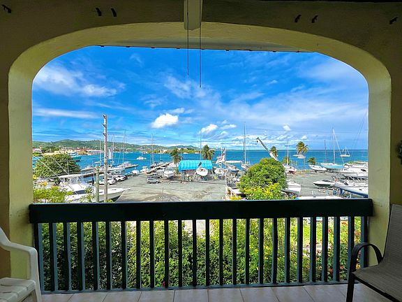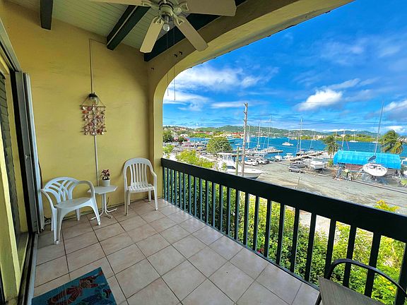 Spacious top-floor two-bedroom condo, offering stunning views of Christiansted Harbor and the sea. This pristine unit features a spacious kitchen and living area that flows smoothly out to the gallery, while the primary bedroom with large bathroom en suite has beautiful sea views from bed. Experience the beauty of sailboats navigating the serene waters by day and the captivating twinkling lights of town at night. This delightful condo combines comfort with breathtaking natural beauty, making it the perfect retreat for those seeking a vibrant coastal lifestyle. Enjoy watching the calm harbor traffic from your covered gallery while you sip your coffee or a cocktail at sunset to take in the lights of town at night. Don't miss out on this exceptional opportunity.! Laundry located in the hall by the guest bedroom and bath for convenience. The unit is located just minutes from downtown Christiansted where you can enjoy a walk on the waterfront, boardwalk or a short ferry ride to a sandy beach at Hotel on the Cay where you can enjoy food, drinks, and live music. Enjoy the nightlife of fine dining, plenty of entertainment or many events, such as Art Thursdays or Jump Ups. Christiansted also has many shops and businesses to find almost everything you need or to book a trip to Buck Island or parasailing. The complex is also less than a quarter mile from Gallows Bay where you can hop on a ferry to go to St. Thomas, enjoy several restaurants, grab what you need from the hardware store, do your grocery shopping or enjoy a coffee. Needless to say, this complex is located in a prime location!