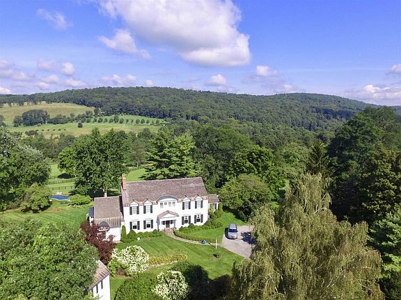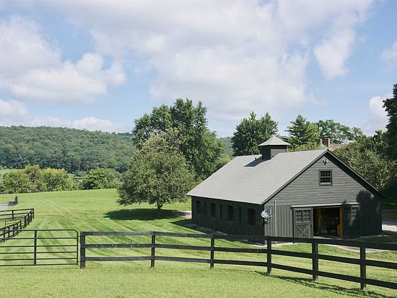 The location? Great! The land that surrounds this wonderful estate home is utterly beguiling being the quintessential rolling horse country landscape with captivating views in all directions as well as offering complete seclusion. The house was built on a foundation of the original home in the late 80's and offers mostly classic elevations but with an floor plan more geared to todays requirements. The center of the home is a spectacular living room with high coffered ceilings. Expansive enough to entertain with a sense of grandeur, yet intimate enough for smaller family gatherings around the log fire. Running the full length of the long side of the living room is a covered porch access by two French doors, offering seasonal out door dining with the enchanting views as the backdrop. Through a set of large pocket doors is the formal dining room with stenciled wood floors. A butler's pantry sits between the DR and the lovely, light filled kitchen with family room attached, with light and views on three sides. The kitchen has high ceilings a bank of windows on the south wall and a barrel cieling. Charming library finished in Revlon Red lacquer. Large first floor master suite with two bathrooms and two dressing rooms. Four more bedrooms all with WIC and bathrooms. The horse barn is top notch, with five 12 x 12 stalls, tack room & wash stall. Bathroom upstairs. All beautifully executed, but not by any means overwhelming. A Dressage Ring with a full length mirror along one end to check on your form. There are a number of fenced paddocks with frost free water troughs. There is an equipment barn next door to the horse barn. A three car garage over of which is a one bedroom apartment with large sitting room/kitchen. Seemingly endless trails to hike, x-country ski, or hack. The property consists of two parcels 24+ and 13+. The 24 acre parcel offers the potential for a conservation easement. To the west of the property is a pond and wetland with a variety of bird life. The free form pool beyond the house is lined with native stone and is more pond like than pool and is discretely amalgamated into the landscaping watched over by towering trees. All systems recently updated. Whole property generator. This is the first time this improved property has been on the market. VIRTUAL TOUR PASSWORD: 1234