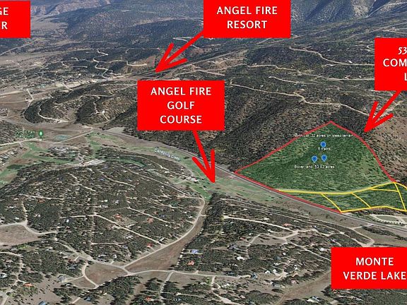 Welcome to an exceptional opportunity in the heart of Angel Fire! 6 lots totaling 53.83 acres of premier commercial land ideally positioned for development. This expansive property offers outstanding visibility along Highway 434, across from the golf course, just minutes from Angel Fire Resort and the Village Center, ensuring maximum exposure to year-round visitors. Zoned for commercial use, this property provides endless potential for a wide range of ventures, from a lodging or resort-style development to retail, dining, professional services, or mixed-use investment projects. The lot features gentle topography, easy access, and panoramic views of the surrounding mountains, golf course, and pine forest, capturing the essence of Angel Fire’s mountain lifestyle. Whether you’re an investor, builder, or visionary entrepreneur, this rare parcel offers a blank canvas in one of northern New Mexico’s ski resort towns. With year-round tourism driven by skiing, golf, biking, and outdoor adventure, Angel Fire continues to see strong demand for both residential and commercial growth. Don’t miss your chance to secure one of the few large commercial tracts in Angel Fire — ideal for those ready to make their mark in the Enchanted Circle. Seller is open to selling the 6 lots individually. Inquire with Listing Realtor.