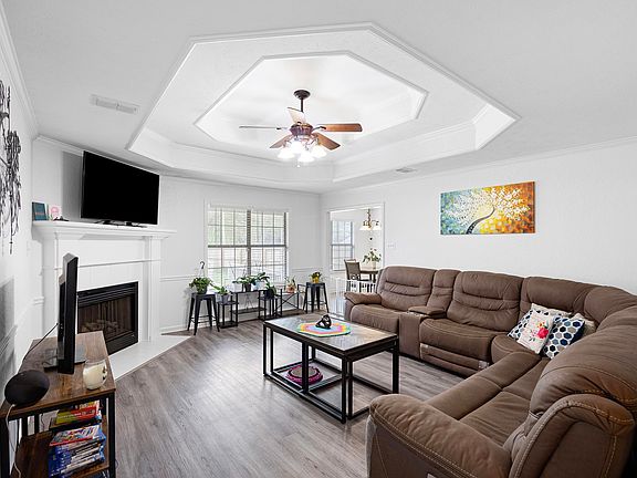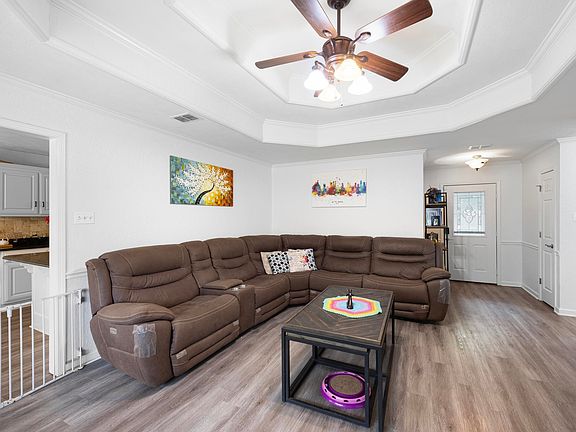 Check out this Gorgeous 4 Bedroom 2 Bath 1,511 Sqft Home with a NEW ROOF, New vinyl flooring and New paint. The living room boasts a large double tray ceiling and welcoming fireplace. The kitchen features amazing granite countertops and stainless steel appliances. The master suite includes a tray ceiling, soaker tub, shower and double vanities. Enjoy time with family and friends in the large fenced in backyard with a spacious deck.