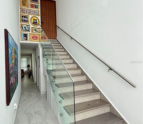 Modern and elegant two-story residence located in the exclusive Riviera Village community in Bayamón with 333 mts2 lot size. This beautiful designed home is being sold fully furnished and equipped with high-end finishes. The first floor features a spacious open-concept layout that seamlessly integrates the kitchen, dining, and living areas, offering abundant natural light and comfortable flow for everyday living and entertaining. A stylish half bathroom completes the first level. The second floor offers a cozy family room, a large primary bedroom with an ensuite bathroom and walk-in closet, two additional bedrooms, a secondary full bathroom, and a dedicated laundry room. The outdoor area is ideal for relaxation and gatherings, boasting a 10 ft x 20 ft heated and illuminated pool, a covered terrace, built-in BBQ area, and outdoor sink. The property also provides a covered double garage plus an additional driveway accommodating two more vehicles. This energy-efficient home includes 30 solar panels, two Tesla batteries, and a solar water heater system. Riviera Village offers exceptional resort-style amenities including tennis, padel, pickleball, beach tennis, and basketball courts, swimming pool, clubhouse, gym, walking and exercise trails, dog park, 24/7 security, and much more.