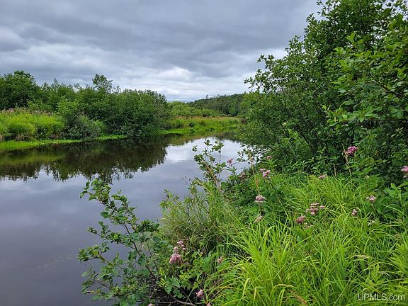 Great acreage property with state land surrounding it and more than 1,300 ft of frontage on the West Branch of the Sturgeon River. Unbelievably pristine 72-acre parcel has gated entry and includes two hunting blinds.