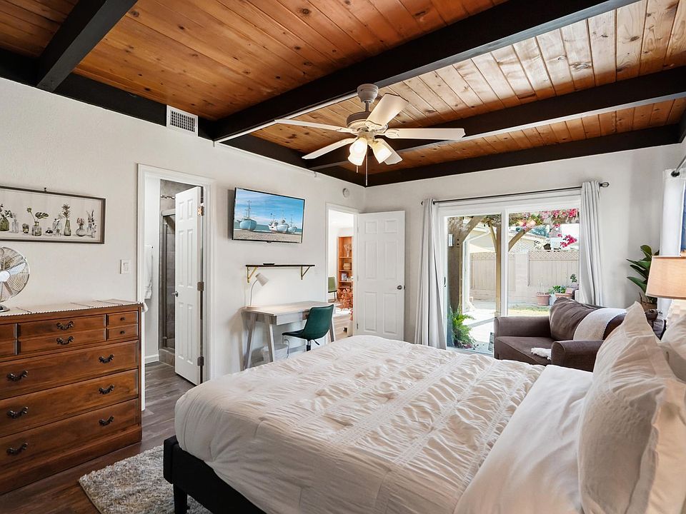 Fully Furnished-Clean, newly designed home with new mattresses, wifi, bbq, smart tvs, and one car garage in a quiet community close to beaches, hospitals, and schools.