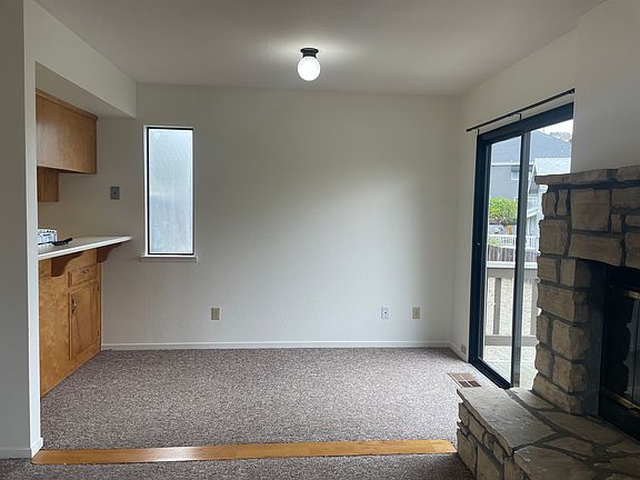 Upstairs includes a living room, kitchen, dining area, bedroom, bathroom, and a front deck. Enjoy the gas fireplace on cold mornings or evenings!