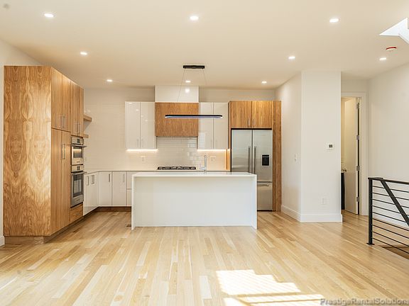 - European-style kitchen with two-toned cabinetry, Fisher & Paykel stainless appliances and an island seating five. Upstairs, two queen bedrooms share a dual-sink bath while the primary suite boasts a walk-in closet and spa-inspired ensuite. The garden level adds a wet bar, fourth bedroom, full bath and ample storage for seamless entertaining and everyday living. Incredibly high ceilings on every one of the 3 floors in this luxurious Triplex.
