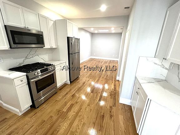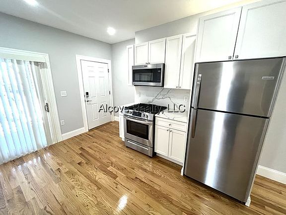 Porter Square: Large and beautifully renovated two bed, one bath (third floor) - Brand New Everything 2022 (all high-end finishes) - Wall removed for open floor plan - kitchen/living with skylight - New white-granite counters - New cabinets - New stainless-steel appliances - New hardwood floors - Modern and tiled bathroom - Central HVAC - LL pays for hot water - In-unit laundry - Private rear deck. Pets negotiable for $75/month/each.