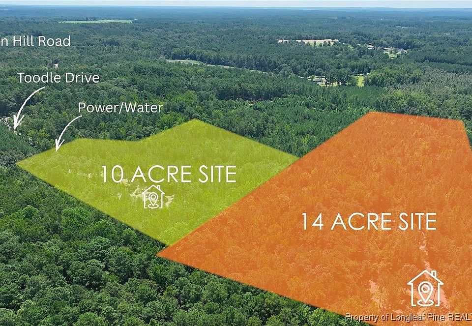 Turn onto Toodle Drive and you'll feel it! Space, quiet, and a stretch of sky that makes you slow down. This 10-acre homesite is ready for what comes next. The gravel road leads to a cleared site surrounded by hardwoods and that Carolina Blue Sky. Power reaches the property entrance, county water is also available at the line, and a recent soil study confirmed areas suitable for a 4-bedroom home! A recorded easement provides easy, access from Cameron Hill Road while keeping your privacy intact. A small Conservation section follows the natural drainageway, adding a sense of balance to the land without limiting your buildable space. No HOA, no restrictions to get in the way of your ability to create what fits your life. Located close enough for a quick run to Sanford or an easy drive to Fort Bragg or Southern Pines, yet far enough that it feels like your own world. Buy this tract alone or pair it with the adjoining 14 acres for nearly 24 acres of Freedom!