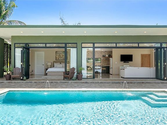 Modern luxury beach casita in Las Picuas, Río Grande. Truly one of a kind, this property has been carefully thought out in its design and craftsmanship. Lots of natural light pours in through floor-to-ceiling, hurricane-rated aluminum windows and sliding doors, creating a bright, airy atmosphere that harmoniously connects the interior with the exterior. High ceilings, cross ventilation, and a skylight over the kitchen infuse the home with a serene tropical ambiance throughout this one-bedroom, one-bath retreat. Sliding doors open to a breezy, open terrace and a private pool oasis framed by amazing greenery and lush vegetation, including an array of tropical fruit trees, all nestled on a generous 960 m² lot. This turnkey casita is fully furnished and fully equipped, featuring unique elements such as an extraordinary bathroom door imported from Bali, once belonging to the President of Indonesia—an incredible, one-of-a-kind piece that adds global character and artistry to the home. Ideal as a private sanctuary or a desirable investment opportunity, this beachside gem blends beauty, privacy, and design in one unforgettable setting—just steps from the beach in Las Picuas, surrounded by nature, and designed for effortless, lock-and-leave living.