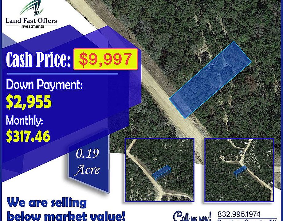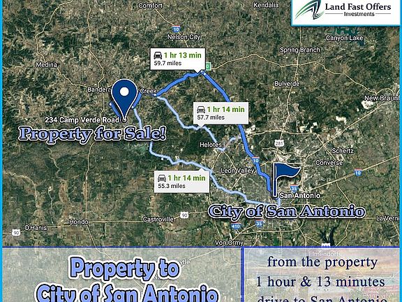 0.19-Acre in Bandera, TX - Unrestricted - Allows Mobile Homes, RVs, Camping - Property Value is $15k - BUY TODAY with $2,955 Down or $9,997 CASH Description: Enjoy this lovely 0.19-acre lot in Bandera, Tx right adjacent to Lake Medina without restrictions! Take advantage of the peace of mind, knowing exactly where your property lines are, which sits off Camp Verde Rd, about 8.7 miles south of downtown Bandera. Flat and accessible via dirt road, perfect for adventure, hunting, or cabin getaway. Power is located on the street, while a well & septic are needed. This parcel contains native grasses and an abundance of trees to keep your homesite private. The city of Bandera is located less than an hour away from San Antonio. Bandera, Texas is known worldwide as the Cowboy Capital. The unique landscape and architecture shows why it is a one of a kind city. Bandera has played an extremely important role in keeping the unique American traditions of the Texas cowboy alive. Call us today: 832.995.2410 Pricing Details: Cash Price: $9,997 Down Payment: $2,955 Monthly Payment: $317.46 Property Details: Parcel Number: 152838 County: Bandera State: Texas Parcel Size: 0.19 Acre City: Bandera Zip Code: 78003 Center GPS Coordinates: 29.640874, -98.991580 Corner GPS Coordinates: 29.640694, -98.991752 29.640950, -98.991321 29.641065, -98.991413 29.640806, -98.991832 Elevation: 1164.7 ft Property Access: Dirt Road Directions To Property: Put this address into your GPS. Lot for sale is 4 lots over. Address: 357 CAMP VERDE RD, BANDERA, TX, 78003 *Disclaimer – Buyer must perform their own due diligence they should do with any land purchase. This property is an assignment of contract and sold as is and all information provided is to the best of seller’s knowledge. Seller does not guarantee accuracy of property location on maps or descriptions show in listing as well as facts describing the property. Buyer to verify all details of property including property location and boundaries and lot lines, as well as feasibility to use property for buyer’s desired purpose. Many of the pictures provided are not personally taken by the seller and some of the presented pictures represent the general area near/around the property. All utilities related to this property are potentially subject to a connection charge or additional expense to bring them to or onto the property. Furthermore, It is understood and agreed to by the parties involved that selling party, while holding an equitable interest in and to the property, is not presently making, and has not made, any representation to any party that it holds legal title in and to the property. To the fullest extent permitted by law, the Buyer hereby agrees to waive, release and forever discharge landnopoly.com, Landnopoly.com and all its affiliate companies from any claim, be it at law or in equity, that the Buyer, their heirs, transferees, assigns, subrogees, devisees, and agents may allege, arising out of our disclosure(s) of its present interest in and to the property, if any as well as out of any potential and accidental discrepancies in lot lines, pictures or property location to the actual property.