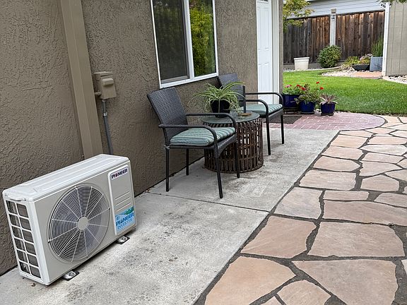 Engineered hardwood floorsFull size stoveFlagstone patioNice large stall shower