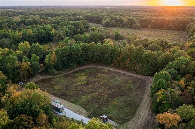 Highly sought after and turn key recreation farm located in Johnson Co, MO with a comfortable cabin, food plots, tower blinds, trail system, and incredible habitat for wildlife also adjoining over 1000 acres of conservation land! This 33 acres is very secluded, yet has easy access from a gravel easement with a cabin tucked at the entrance behind the treeline. Ideal scenario because this farm adjoins J.N. Turkey Wildlife Area that is a bow only hunting conservation area. This gives the ability to hunt and access an additional 1,000 acres most of which is difficult to access for the general public. The 33 acres consists of 20+/- open acres with Class II soils currently a mix of dense grassland and 3 food plot locations totaling 3+/- acres currently planted in oats and four tower blinds that will stay with the farm. With 13 acres of mature timber including huge white oaks, persimmon groves, huge sycamore and cottonwoods, and mixed age walnuts. A live creek known as Crooked Creek flows through the eastern portion of the property which adjoins Muddy Creek just to the north. During dry seasons, the creek still holds water and wildlife use it to water. The dense grassland could be converted into tillable acres for an expandable food source and generating annual income. Cabin is as a great place to stay during hunting season or weekend retreats. It is completely renovated on the interior. Furnished with two cots, shelving, a bar top, gun rack, couch, and AC Unit, and several LED lights. The cabin has insulated living quarters, a nice front porch, large gravel parking area, and garage access on the side ideal for parking and locking up an ATV inside. The cabin currently runs off a generator and is not hooked up to utilities. It is rare to find a smaller tract that offers all this one has, including a comfortable cabin, turn-key hunting set up, complete seclusion from the road, and excellent recreation and hunting habitat
