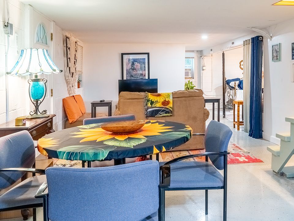 Grandma's Basement in Asheville/pet friendly, 800 square foot studio, complete with Spectrum Internet and TV (about 100 channels), large, private, shaded porch and big backyard, plenty of free off-street parking, very safe neighborhood,10 - 15 minutes from just about everything in Asheville. It includes a queen-size bed, plus a new daybed, washer/dryer, fully stocked kitchenette (hot plate, toaster oven, microwave, a Keurig and a Ninja drip coffee pot, small fridge, pots and pans, and plenty of dishes and glassware), plus other essentials like coffee, toilet paper, paper towels for starters and a well-lit work area. Welcome working Nomads, medical and educational professionals. Two adults will be comfortable. This is a Midterm rental, though we will negotiate with some exceptions.