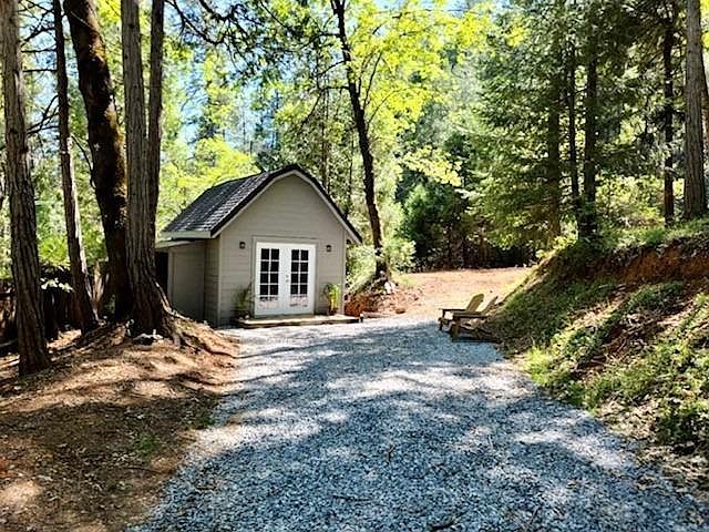 A must see 5-acre parcel 5-minutes to historic Georgetown. Tiny home/cabin with loft; cozy, clean, newly remodeled, furnished, never lived in. Hot outdoor shower, good sun exposure. Multiple build sights and roads cleared. Plans for Two Story 1600sf house and ADU plus structional engineering for buildings complete. PGE engineering paid for and complete. Perc & Mantle complete.