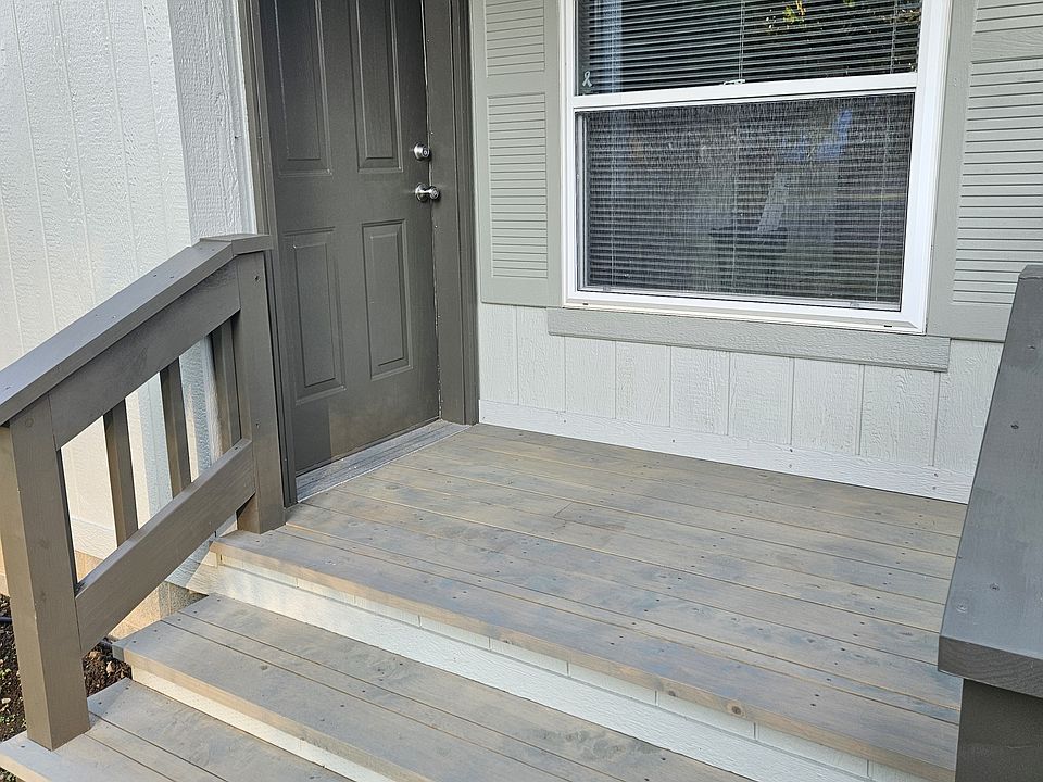 Freshly painted entire interiorShower doorNew blindsVaulted ceilingsReplaced windowsNew vinyl flooringGreat light