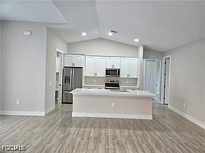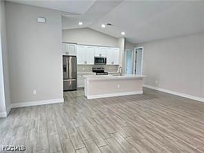 New 4 Bedroom 3 Full Bath Vaulted ceiling pool home!! NEVER LIVED IN!! Impact Windows, Large open floor plan, tiled floors complete house, quartz countertops, eat in breakfast bar kitchen with center island, stainless appliances, inside laundry room, Main bedroom offers two walk in closets, sliders out to the lanai, main bathroom, offers large walk in tiled corner shower, double sink high-top vanity, linen closet & privacy windows, there are 3 nicely appointed bedrooms on the other side of the house with a full hall bath with tub & the 4th bedroom is an ensuite guest room that connects to the pool lanai bath, screened pool paver lanai, two car garage with sprinkler system.