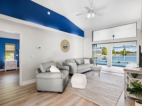 Find Your Florida at Seabreeze Oasis! Ideally located with easy access to Ft.Myers Beach and Sanibel Island. Embrace seamless indoor-outdoor living with three fold-away doors that bring the outdoors in. Fully equipped kitchen features a pass-through to an outdoor bar. Relax in the heated pool, or enjoy fishing right off the private dock. Situated on Seabreeze Lake, with access to 9 miles of scenic canals. Home comes complete with 5 kayaks for your adventures!This property features 2 master bedrooms. Perfect for multiple couples or families. In addition, there are two additional bedrooms featuring 2 twin beds, a twin bunk and a full on full bunk accommodating an additional 8 people! Comfortably sleeps 10 but can accommodate up to 14 when utilizing all beds. A queen pull out and twin pull out are great bonuses! One bathroom leads straight to the lanai for easy access when enjoying a day by the pool. Great fishing off the dock. Open concept kitchen with all the amenities open to dinette and great room. PLUS 2 additional living spaces! Included in rental are 4 KAYAKS, plus 1 tandem kayak, FISHING RODS, baits and lures, and 9 ft PING PONG TABLE! Laundry room includes washer and dryer for your stay! Fenced in Yard.