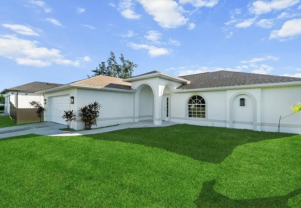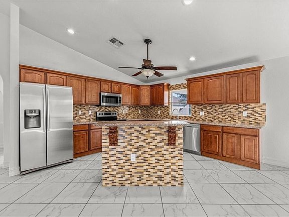 Built in 2013, this bright and airy home features an open floor plan with tile flooring throughout. The kitchen is equipped with stainless steel appliances and granite countertops. The 2024 re-roof offers peace of mind. The primary suite includes his and hers closets, a separate shower and garden tub, and dual sinks. Enjoy a split-bedroom layout and a spacious backyard with plenty of room to add a pool is in zone X NO Flood insurance is required.