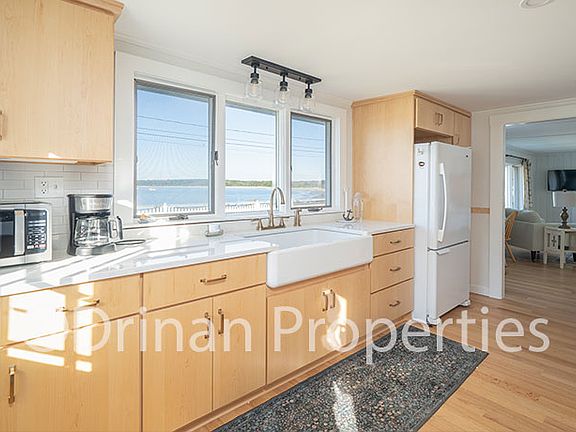 Cape Elizabeth: Kettle Cove. Spectacular views await you from this cozy seaside cottage. Just renovated, this sunny, oceanfront 2 bedroom, 1 bath Ranch features a new kitchen and bath, hardwood floors, a gas range, a washer & dryer, one detached garage parking space, a storage shed and a large yard for recreating. Whether it's sitting in the front yard in your Adirondack chair enjoying the south-facing exposure, or walking the beaches of Kettle Cove and Crescent Beach, or launching your kayak and exploring the shoreline or nearby Richmond Island, this home offers many wonderful opportunities to experience the Maine coast at its finest. $2800.00/mo plus utilities. Please note: This home is being offered furnished on a year-round basis. No smokers or pets allowed.