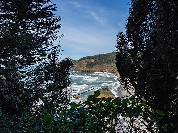 LIGHTHOUSE VIEW & view of waves rolling onto Short Beach and waterfalls on the bluffs of Cape Meares. Rare & beautiful oceanfront half acre homesite with deeded access easement to historic Lost Boy Beach with its magical cave going through the point and exiting the other side. Oceanside Water District serves other homes on this private road. Septic required. Power available.